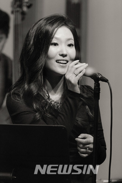 5일 저녁 서울 동작구 대방동 복합문화공간 우나앤쿠에서 재즈 보컬리스트 이현정의 신보 발매 기념 콘서트가 열려 이현정이 노래하고 있다.