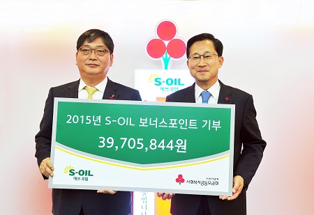 이날 전달한 기부금은 'S-OIL 보너스카드 포인트 기부 캠페인'을 통해 주유고객 6725명이 기부한 1985만원과 동일 금액의 에쓰오일 출연금을 더해서 마련됐다.