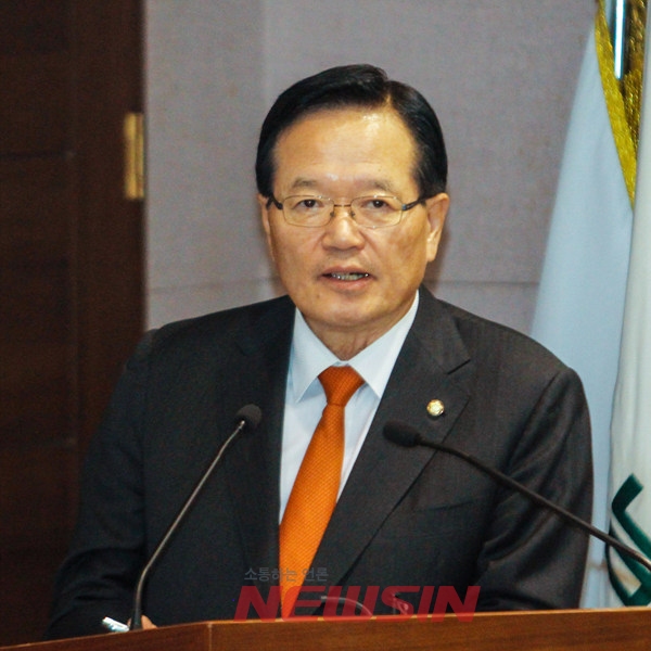 정의화 국회의장이 21일 저녁 서울 종로구 삼청동 북한대학원대학교에서 열린 민족공동체지도자과정에서 '한국의회의 통일준비'를 주제로 초청특강을 하고 있다.