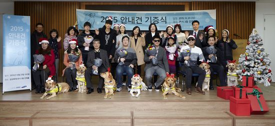 이날 기증식에는 안내견 파트너로 선정된 시각장애인들과 그 가족, 안내견의 성장과 훈련을 담당한 자원봉사자, 안내견 훈련사, 삼성화재 임직원 등 100여 명이 참석했다.
