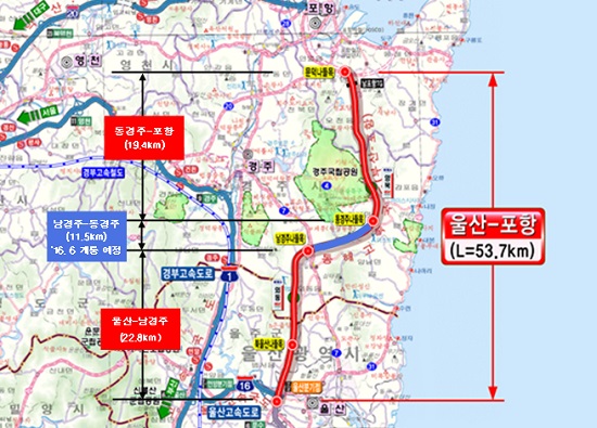 [뉴스인] 최문수 기자 = 울산-포항 고속도로 개통으로 부산에서 울산과 포항 이동시간이 크게 단축될 전망이다.