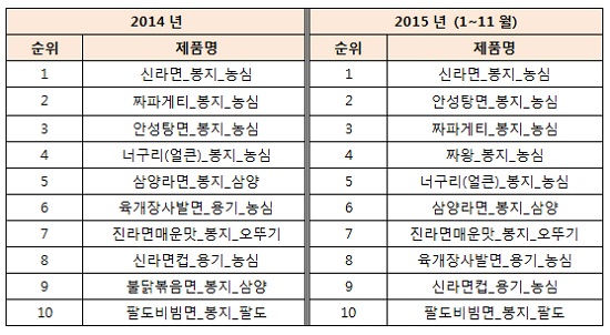 농심 관계자는 "올해는 굵은 면 중화요리 콘셉트의 신제품 트렌드 외에 쿡방 등 요리를 주제로한 방송의 영향으로 라면이 다양한 요리 소재로 각광받았다는 점이 예년과 다른 특징"이라고 말했다.