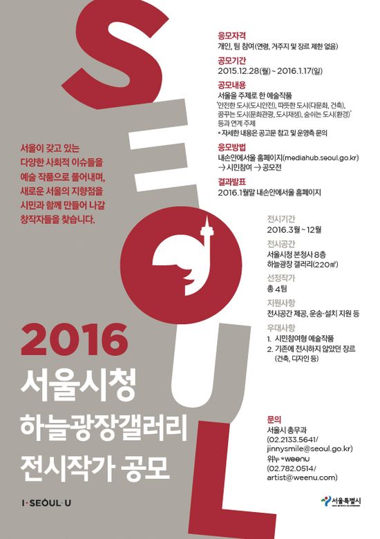 [뉴스인] 민경찬 기자 = 서울시가 오는 17일까지 '서울시청 하늘광장 갤러리 전시작가 공모'를 진행한다.