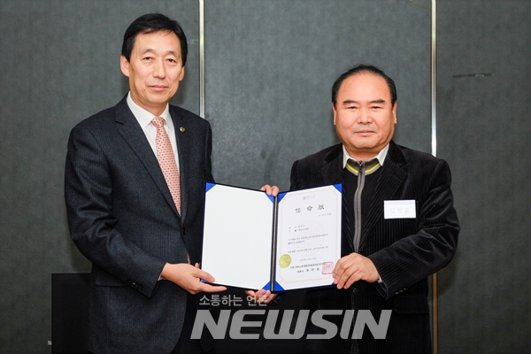 [뉴스인] 민경찬 기자 = 12일 저녁 서울 강남구 삼성동 무역센터 51층 회의실에서 '2016년 칭화대학 한국캠퍼스 고문단' 위촉식이 열려 이명선 이사장(왼쪽)이 김방모 (주)금성 회장에게 임명장을 전달한 후 기념촬영을 하고 있다.