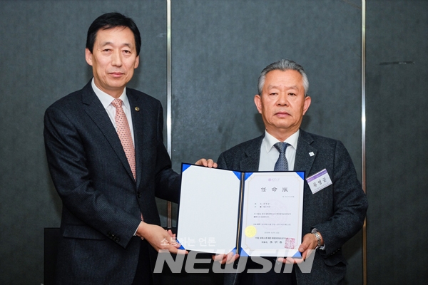 [뉴스인] 민경찬 기자 = 12일 저녁 서울 강남구 삼성동 무역센터 51층 회의실에서 '2016년 칭화대학 한국캠퍼스 고문단' 위촉식이 열려 이명선 이사장(왼쪽)이 류영균 필고 대표에게 임명장을 전달한 후 기념촬영을 하고 있다.