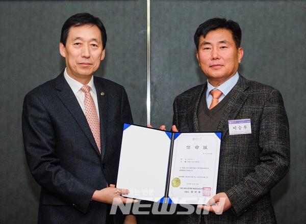 [뉴스인] 민경찬 기자 = 12일 저녁 서울 강남구 삼성동 무역센터 51층 회의실에서 '2016년 칭화대학 한국캠퍼스 고문단' 위촉식이 열려 이명선 이사장(왼쪽)이 이승우 인천도시공사 본부장에게 자문교수 임명장을 전달한 후 기념촬영을 하고 있다.