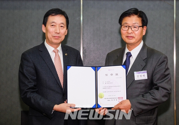 [뉴스인] 민경찬 기자 = 12일 저녁 서울 강남구 삼성동 무역센터 51층 회의실에서 '2016년 칭화대학 한국캠퍼스 고문단' 위촉식이 열려 이명선 이사장(왼쪽)이 김영배 경찰청 경호과장에게 자문위원 임명장을 전달한 후 기념촬영을 하고 있다.
