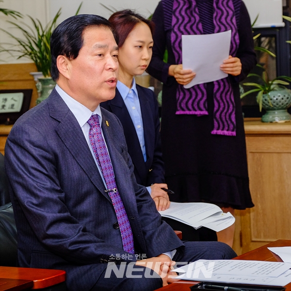 [뉴스인] 민경찬 기자 = 케넨바에프 알마즈 비슈케크 시의회 의장(왼쪽)이 이끄는 비슈케크 시의회 대표단이 14일 오후 서울 중구 소재 서울시의회를 방문한 가운데 박래학 서울시의회 의장이 환영사를 하고 있다.