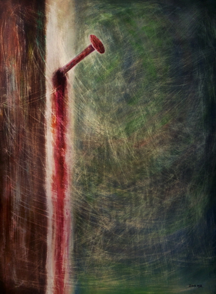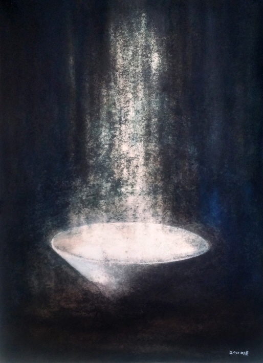 김 작가는 "먹물은 색을 묵직하게 누르고 목초액은 그림 표면에 윤기를 주고 깊은데서 아련하게 우러나는 듯한 느낌을 준다. 목초액은 물감을 종이 깊숙히 침투시켜 마르면서 고정시킨다"고 설명했다.