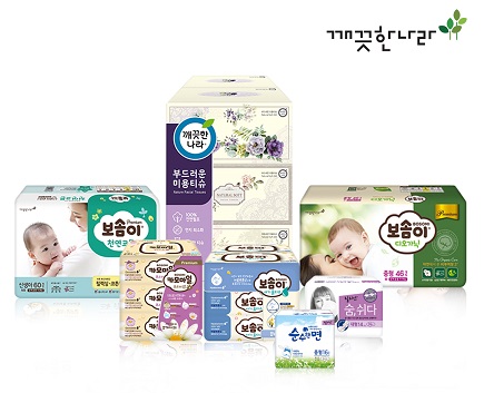 국내 소비자가 뽑은 대한민국 만족도 1위 브랜드 미용티슈에 '깨끗한나라'가 선정됐고 아기용 물티슈에 '보솜이'가 2년 연속 선정됐다.