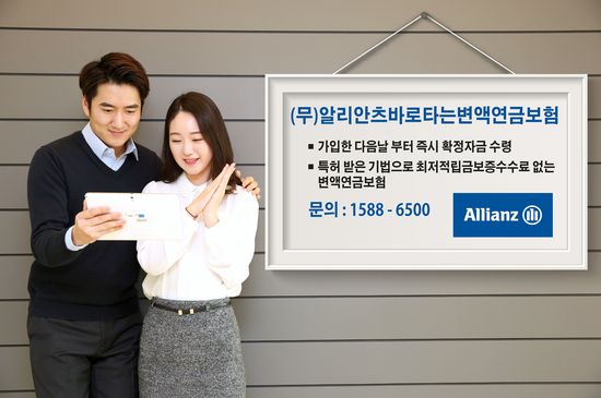 [뉴스인] 최동희 기자 = 알리안츠생명은 목돈을 일시에 보험료로 납입, 다음달부터 확정자금을 받으면서 성장자산펀드 편입비율을 최대 80%까지 투자해 높은 수익률을 추구하는 ‘(무)알리안츠바로타는변액연금보험’을 출시했다고 2일 밝혔다.