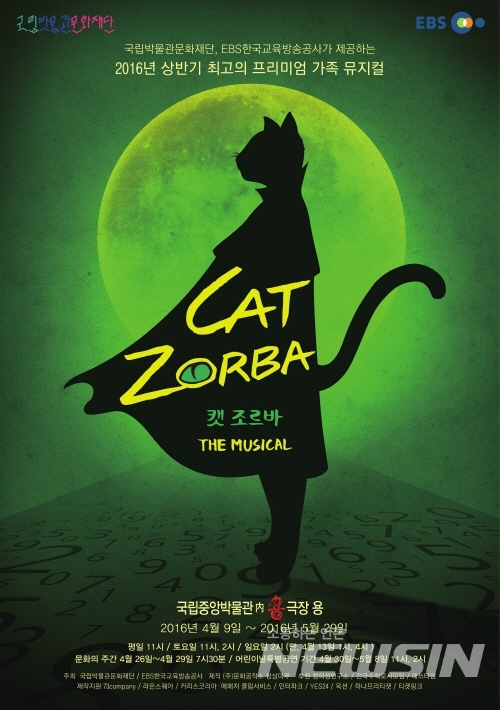 국립박물관문화재단과 EBS한국방송공사가 공동 주최하고 가족 모두가 함께 즐길 수 있는 프리미엄 가족 뮤지컬 ‘캣 조르바’는 4월 9일부터 5월 29일까지 국립중앙박물관 극장 용에서 공연된다.