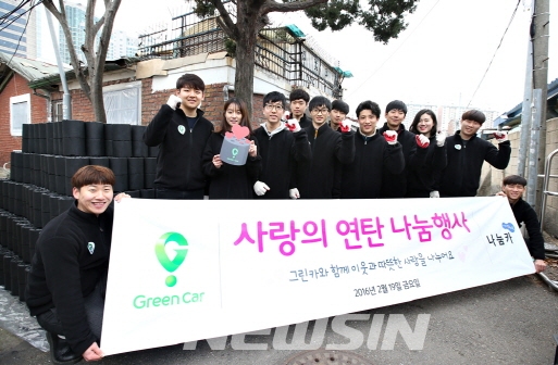 롯데렌터카(구 kt금호렌터카)가 제공하는 10분 단위 무인(無人) 초단기 렌터카 서비스인 카셰어링 그린카(대표 이용호)는 서울시의 차량공유경제 브랜드 '나눔카'와 함께 19일 오후 서울 용산구 한강로동에서 '사랑의 연탄나눔 봉사활동'을 진행했다.