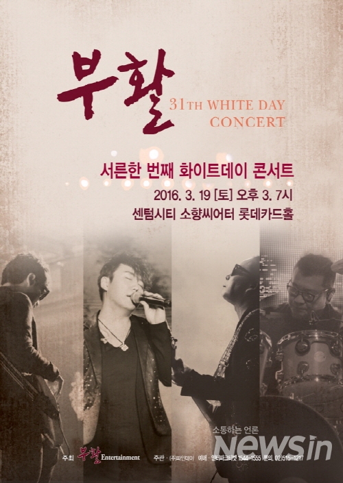 [뉴스인] 김영일 기자 = 대한민국을 대표하는 최고의 록 밴드 ‘부활’이 오는 3월 19일 센텀시티 소향씨어터 롯데카드홀에서 2016 부활 콘서트 ‘서른한 번째 화이트데이’ 공연을 갖는다.