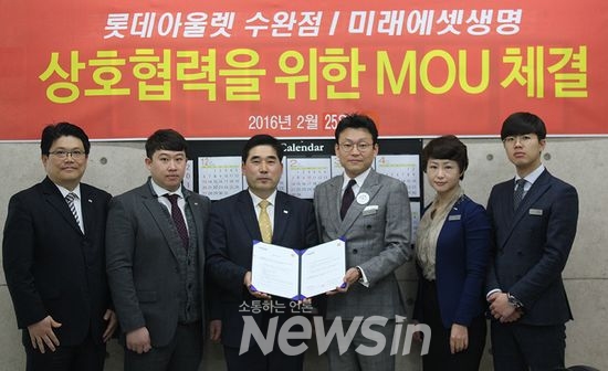 [뉴스인] 최동희 기자 = 미래에셋생명 TFC영업본부(본부장 강창규)는 지난 25일 광주 롯데아울렛 수완점에서 롯데아울렛 수완점(점장 문언배)과 업무협약 체결식을 진행했다고 29일 밝혔다.