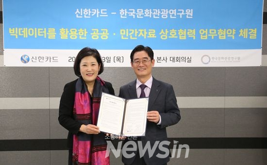[뉴스인] 최동희 기자 = 신한카드(사장 위성호)와 한국문화관광연구원(황혜진 원장)은 신한카드 본사에서 빅데이터를 활용한 공공·민간자료 상호협력 업무협약을 체결했다고 3일 밝혔다.