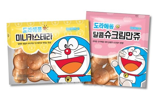 세븐일레븐은 친숙한 캐릭터로 꾸준한 인기를 얻고 있는 도라에몽을 빵으로 만들어 귀여운 모양만큼이나 맛있는 '도라에몽미니카스텔라'와 '도라에몽슈크림만쥬'를 선보인다.