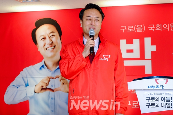 [뉴스인] 민경찬 기자 = 새누리당 서울 구로을 선거구에 출마한 박장호 예비후보가 3일 오후 서울 구로구 구로동 광진빌딩에서 선거사무소를 열고 인사말을 하고 있다.