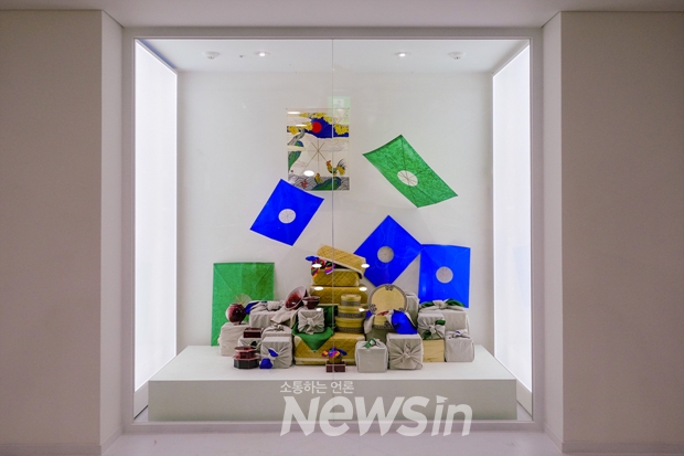 특히 서영희 스타일리스트가 디스플레이한 한국 전통문화 '희망의 방'에는 대한민국 유일의 조선시대 방패연 원형기법 보유자 리기태(한국연협회·리기태 연보존회 회장) 한국 민속연 명장의 작품인 방패연 '태양의 새', '오디세이', '초봄' 등 여섯 작품이 1년간 임대 전시되고 있다.