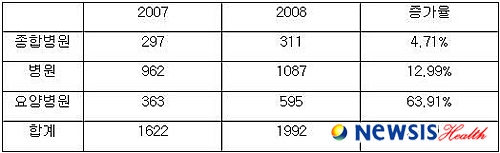 지난해 전체 병원수가 큰 폭으로 증가한 데는 요양병원의 높은 증가율이 주요 요인이었음을 알 수 있는 대목이다.