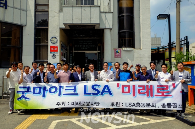 [뉴스인] 민경찬 기자 = 굿마이크 LSA 미래로 봉사단과 경기 고양시 덕양구 대덕동 주민센터관계자들이 29일 열린 '사랑의 쌀' 나눔행사에서 '대덕동 파이팅'을 외치고 있다.