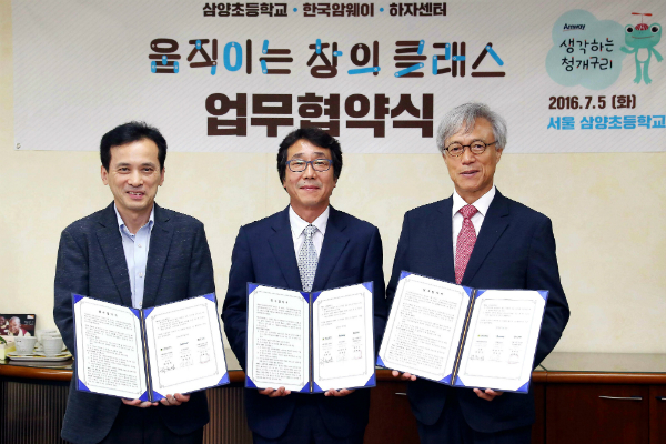 한국암웨이는 지난 5일 서울 강북구에 위치한 삼양초등학교에서 '움직이는 창의클래스' 협업을 위한 MOU를 체결했다고 6일 밝혔다.