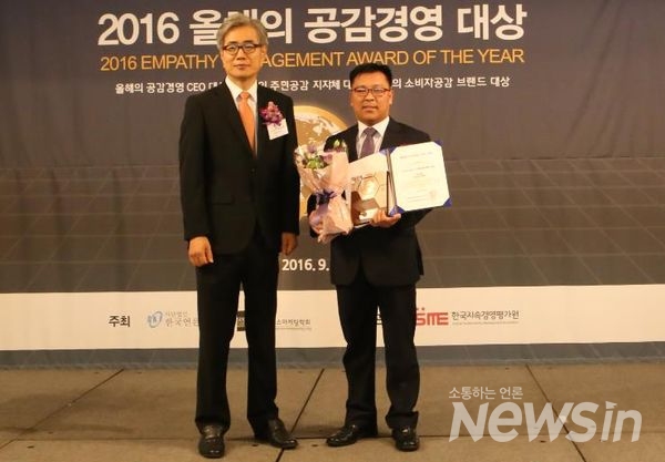 (사)한국언론인협회와 (사)서비스마케팅협회가 공동으로 주최하고 한국지속평가원이 주관한 '2016 올해의 공감경영 대상'은 고객을 진심으로 섬기고 지역사회에 기여하는 CEO 및 브랜드, 지자체를 선정하고 격려하고자 제정됐다.