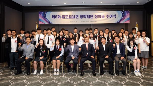 최재문 이사장과 이경규 이사는 선정된 총 80명의 고등학생 중 대표로 참석한 33명의 학생들에게 장학증서와 총 8000만원의 장학금을 전달했다고 팔도는 전했다.