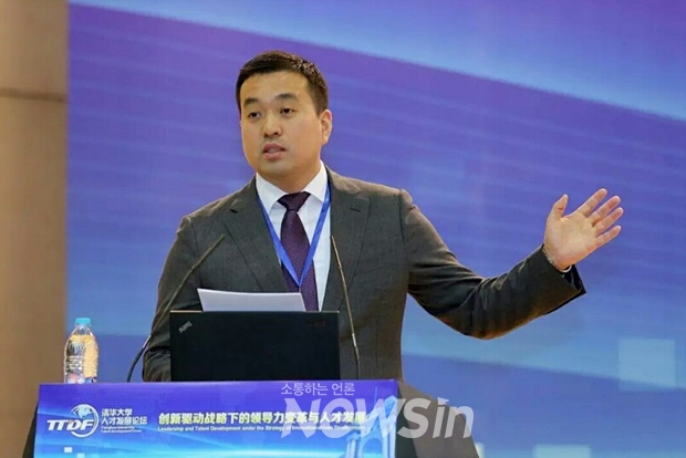 [뉴스인] 민경찬 기자 = 지난 3일 중국 베이징 칭화대학 본교에서 '2016 인재발전포럼'이 열린 가운데 (주)홍원 북경지사 이충건 대표가 주제 발표를 하고 있다. (사진=칭화대 한국캠퍼스 제공)