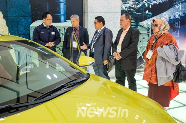 [뉴스인] 민경찬 기자 = DH 그룹(회장 정삼승)의 초청으로 한국을 방문 중인 2018 인도네시아 아시안게임 및 협력사업추진단이 2일 오전 현대자동차 울산 공장을 방문해 현대자동차 관계자로부터 자동차에 관한 설명을 듣고 있다.