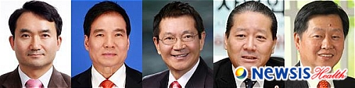 19일 대한의사협회 중앙선거관리위원회에 따르면 전기엽 용산 미8군(53), 유희탁 의협대의원회 의장(65), 김세곤 전 의협 상근부회장(65), 주수호 현 의협회장(51), 경만호 대한적십자사 부총재(57) 후보 순으로 신청 마쳤다고 밝혔다.