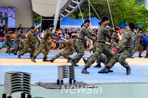 [뉴스인] 민경찬 기자 = 강서구청 개청 40주년 '제9회 강서어린이 동화축제'가 13일 오후 강서구 방화근린공원 일대에서 열린 가운데 제1공수특전여단 대원들이 특공무술 시범을 보이고 있다.