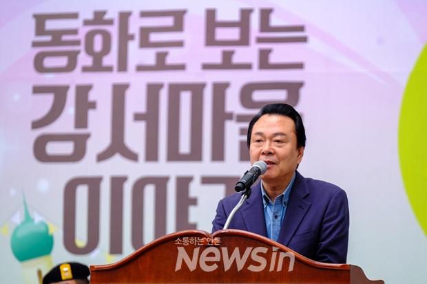 [뉴스인] 민경찬 기자 = 강서구청 개청 40주년 '제9회 강서어린이 동화축제'가 13일 오후 강서구 방화근린공원 일대에서 열린 가운데 노현송 강서구청장이 축사하고 있다.