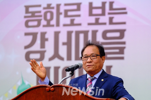 [뉴스인] 민경찬 기자 = 강서구청 개청 40주년 '제9회 강서어린이 동화축제'가 13일 오후 강서구 방화근린공원 일대에서 열린 가운데 이영철 강서구의회 의장이 인사말을 하고 있다.
