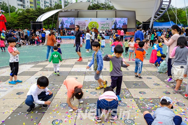 [뉴스인] 민경찬 기자 = 강서구청 개청 40주년 '제9회 강서어린이 동화축제'가 13일 오후 강서구 방화근린공원 일대에서 열려 축제장을 찾은 어린이들이 축포용 종이꽃가루와 함께 즐거운 시간을 보내고 있다.