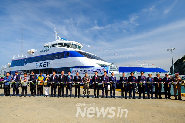 [뉴스인] 민경찬 기자 = 인천 옹진군은 5일 오후 옹진군 백령면 용기포항에서 '백령 오전 출항 여객선(옹진훼미리호) 취항식'을 열었다.