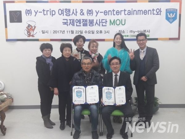 [뉴스인] 김동석 기자 = (주)Y-trip 여행사, Y-엔터테인먼트(김성욱 회장), 국제엔젤봉사단(추광호 총재) 등은 지난 22일 상호협력 활성화를 위한 MOU를 체결했다고 23일 밝혔다.