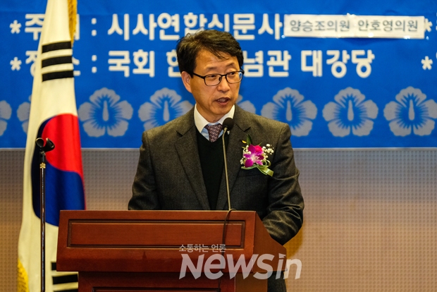 [뉴스인] 민경찬 기자 = '제4회 대한민국행복나눔봉사대상' 시상식이 23일 오후 국회의사당 국회헌정기념관 대강당에서 열려 이치수 대한인터넷신문협회 회장이 축사하고 있다.