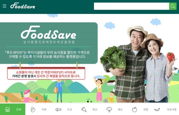 푸드세이브는 정보제공형 플랫폼으로 생산자 단체와 복지시설이 당사자 간 직접 거래(P2P)하는 구조다. 농식품 생산자가 본인의 상품을 올리고 구매자인 복지시설이 판매자와 직접 접촉해 거래하게 된다.