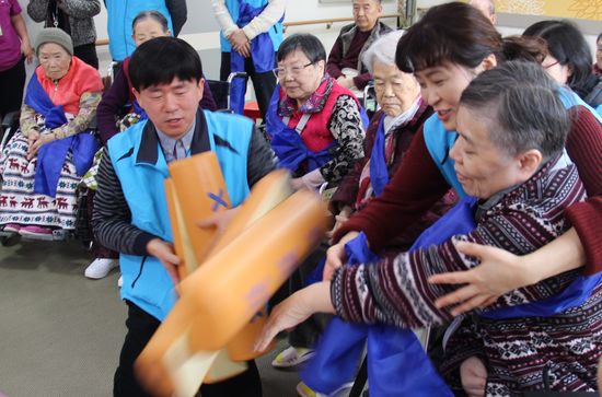 하이트진로 임직원들은 8일 구립서초노인요양센터를 방문해 180여명의 어르신을 모시고 윷놀이, 투호놀이 등 민속놀이를 함께 즐기며, 새해 복을 기원했다.