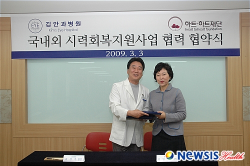 이와 관련 하트-하트재단은 힘겨운 국내외 저소득 환자들을 위한 시력회복지원사업을 기획·운영하고, 김안과병원은 이 사업에 의료진 파견, 수술 시행, 의술 전수, 자문 활동 등에 협력하게 된다.