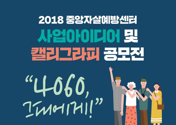 [뉴스인] 조진성 기자 = 중앙자살예방센터(센터장 한창수)와 보건복지부(장관 박능후)는 전 국민을 대상으로 중장년을 위한 자살예방 사업아이디어 및 캘리그라피 공모전 '4060, 그대에게'를 오는 11월18일까지 개최한다.