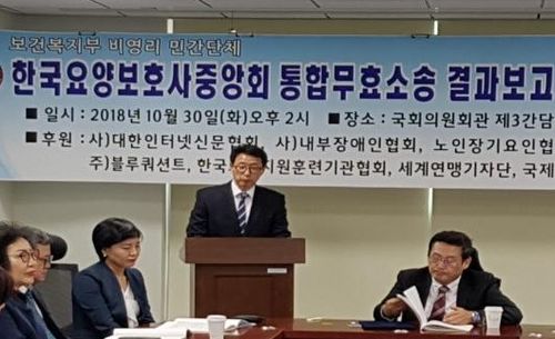 [뉴스인] 김동석 기자 = 통합 한국요양보호사중앙회(회장 김영달)는 지난달 30일 국회 의원회관 제3간담회실에서 장기요양관련 단체장과 요양보호사 및 임원 관계자 70여명을 초청해 민소현씨가 통합 한국요양보호사중앙회 김영달 회장 상대로 제기한 통합무효소송 결과에 대한 보고 및 중앙회의 새로운 도약을 위한 공청회를 가졌다.