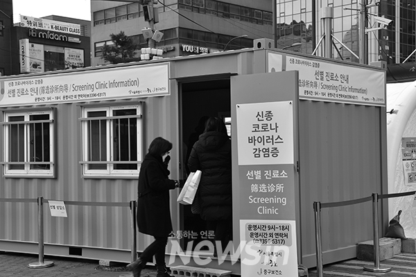 [뉴스인] 안희영 기자  = 4일 서울 중구와 중구보건소는 관광객이 많은 명동입구에 우한폐렴(신종 코로나바이러스감염증) 선별상담소를 마련하여 운영하고 있다.