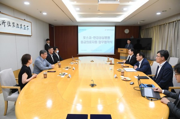 [뉴스인] 조진성 기자 = 한림대학교한강성심병원과 포스코가 지난달 30일 서울 강남구 포스코센터에서 응급의료지원 업무협약을 맺었다.