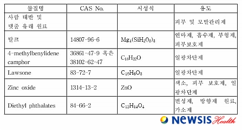 또한 이를 뒷받침하는 연구결과와 함께 안전성 재평가가 요구되는 원료로 최근 문제가 되고 있는 탈크(14807-96-6·Mg4(SiH203)3·연마제, 흡수제, 부형제, 피부보호제)를 명시하고 있다.