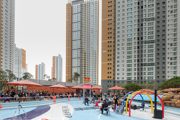 이 공간은 아파트의 중심 공간으로 발코니에서 내려다보일 수 있도록 설계돼 주민들이 직접 내려오지 않고도 집에서 공연을 관람할 수 있는 구조다.