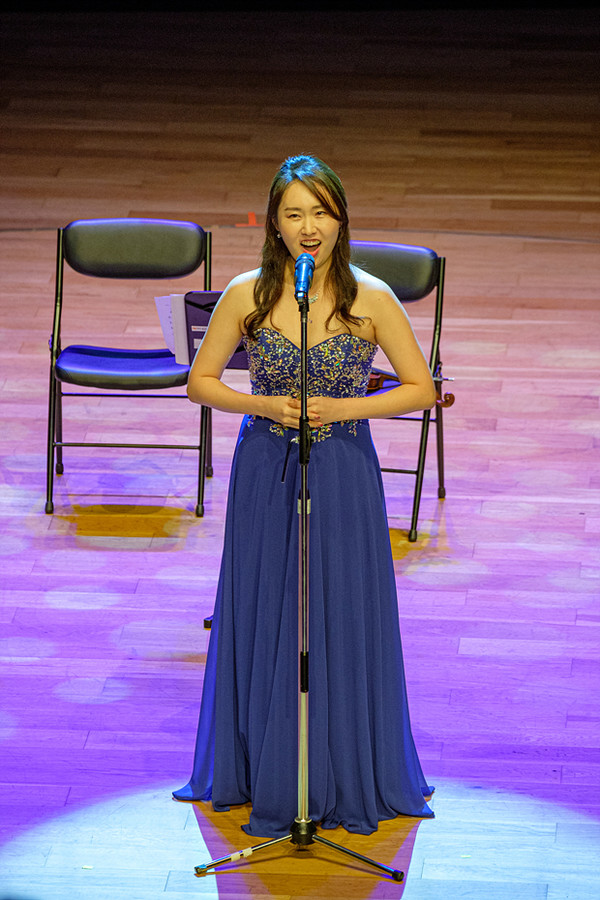 [뉴스인] 민경찬 기자 = 지난 5일 저녁 인천 복합문화공간 트라이보울에서 실내악단 i-신포니에타(단장 조화현)의 코로나19 위로 소통 콘서트 '그랬구나! 니편이 되어줄게"가 열려 소프라노 정수진이 '코스모스를 노래함'을 연주하고 있다.