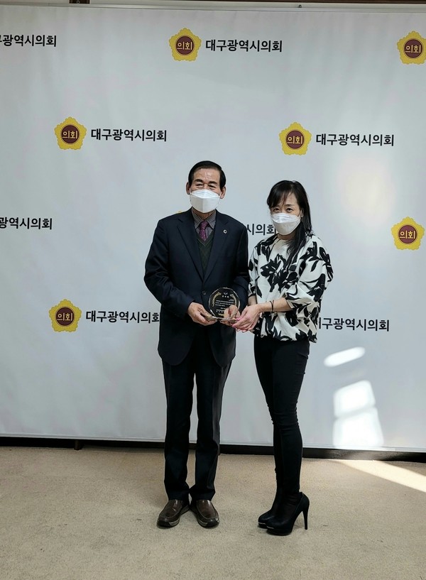 한국학교폭력예방협의회 이지흔 대표는 "한국학교폭력예방협의회 발전에 지대한 공헌에 감사한 마음을 담아 대구시의회 장상수 의장님께 감사패를 전하게 됐다"고 밝혔다.