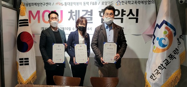[뉴스인] 조진성 기자 = 한국금융범죄예방연구센터와 한국학교폭력예방협의회, 동떡F&B, 로얄가드는 지난 10일 경북경산 소재에 우미관에서 업무협약 및 임명장 수여식을 진행했다고 15일 밝혔다.